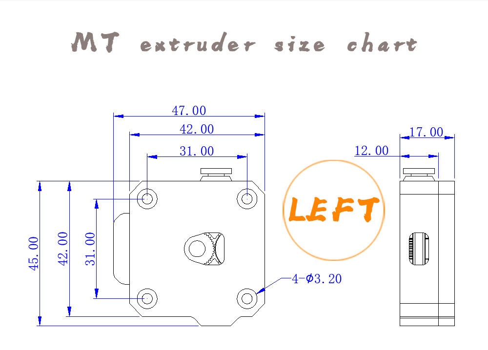 | Package Contents | 1 x Left MT Extruder Kit 1 x Gear |