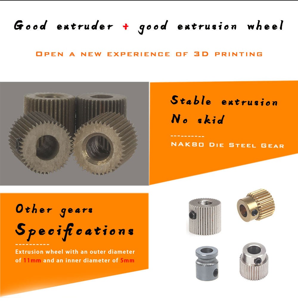 4. The extruder adopts high-quality abrasive steel gears, which can better bite the filament, and the extrusion force is stronger.