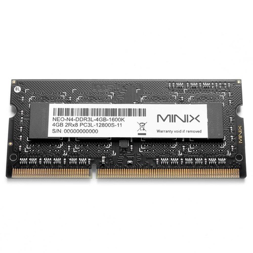 | General | Model: MINIX NEO N4 Capacity: 4GB DDR3 Memory Speed: PC3L-12800S/1600MHZ Memory Socket:: SO-DIMM Ram Compatible: Work with DDR3L socket Memory Channel: Dual Channel CAS Latency: CL11 Memory Timing: 11-11-11-28 Pins: 204pin Voltage: 1.35V Features: Unbuffered Function: Non-ECC |