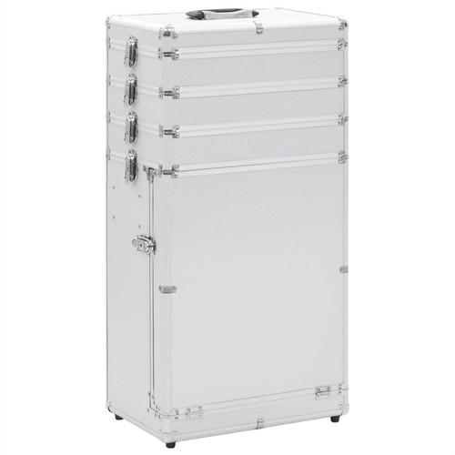 Our make-up trolley is the ideal solution for keeping your cosmetics neatly organised. Simply pack everything you need in this practical beauty case and take it with you! Made of wood, ABS sheeting and aluminium, this make-up trolley will easily store your cosmetics and keep them in perfect condition. This makeup suitcase features 4 tiers and 1 drawer, providing ample storage space for your cosmetics and beauty products. It features 4 detachable casters, which make it easy to move around and take it with you everywhere you go!