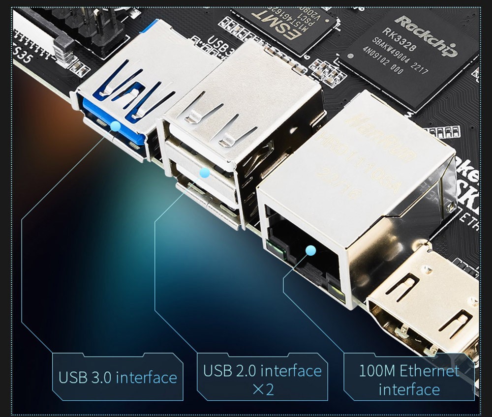 SOC uses Rockchip's 4-core Cortex-A53 architecture RK3328 with Armbian system, perfectly running Klipper host.