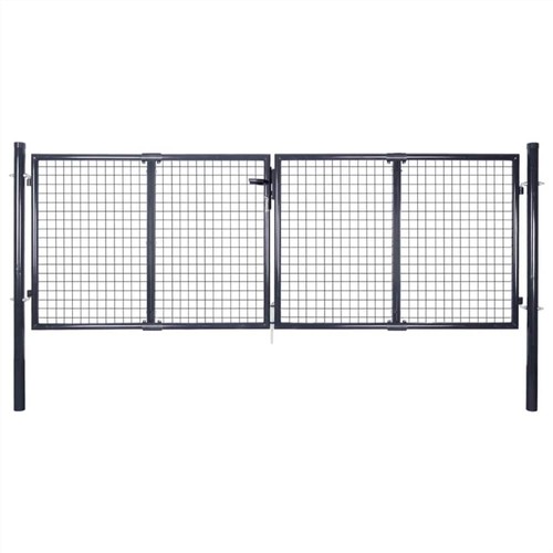 Featuring a high level of stability and durability, this fence gate can be used as a practical, modern entryway for your garden, patio and terrace. The garden gate is perfect in workmanship and manufactured from galvanised steel with a powder-coated finish, which is rust resistant and forms a sturdy construction. It has two side posts with bolt hinges for easy installation. It also has a ground stake for the large bottom bolt, which ensures the gate can be locked well. Delivery also includes three keys.
