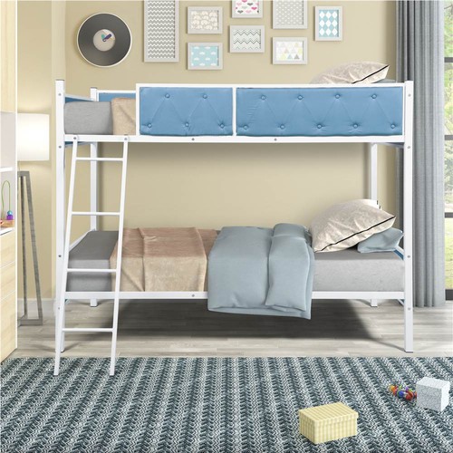 This stylish bunk bed with two twin beds can save space for you. Without a cumbersome spring box, the space under the lower bunk bed gives you extra storage space.