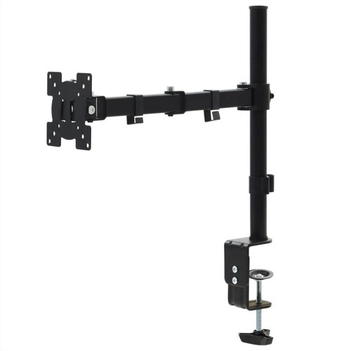 Our single-arm monitor desk mount presents the perfect way to maximally utilise the space on your desktop. This desk mount can hold one monitor or TV of up to 32" with a maximum weight of 8 kg. It fits all flat screen monitors and TVs with the VESA size of 50x50 mm, 75x75 mm, or 100x100 mm. The VESA plate can be removed for easy installation. Featuring a wide range of motion with +45°/-45° tilt angle, 180°/270° swivel angle and 360° rotation as well as adjustable height, this desktop TV bracket is very user-friendly, and you are always able to find the optimal viewing angle. The monitor mount has a concealed wiring design to keep your desk tidy and clean. There are two ways to install the desk mount: 1) With a heavy-duty, stable, yet movable C-clamp or 2) A more permanent installation with a tensioning screw. Assembly is easy.
