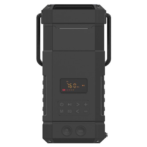 | Specification | Bluetooth: 5.0 (A2DP/AVRCP/HFP/HSP) Power Supply: Rechargeable (DC3.7V Li-polymer battery 5000mAh) Torch: 1.5W/120LM LED Camping Lights: White light 6000K; yellow light 580K. Charging Time: Approx. 3.5 hours (when using USB) Use Time: Bluetooth 12H; Radio 13H; Torch 12H; Camping light 10H USB Output: 5V1.5A Charging Input: 5V2.0A Speaker Power: 14W (7W*2) Ports Input: USB (Type-C); Output: USB (Type-A) Frequency: FM: 76-108MHZ; AM: 522-1710KHZ Dust and Waterproof Rating: IPX5 |