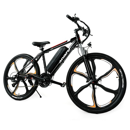 The Electric Mountain Bike is built to last. It features a strong and durable aluminum frame that can withstand rough and tough trails. The front and rear disc brakes ensure reliable stopping power in all weather conditions. The bike also comes equipped with a bright headlight, making it easy to ride at night.