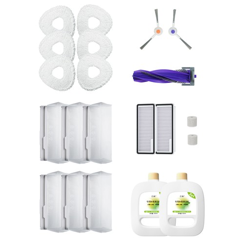 | Package Contents | 6 x Mop 6 x Dust Bag 2 x Filter 1 x Rolling Brush 2 x Cotton Filter 2 x Side Brush 2 x Cleaning Solution |