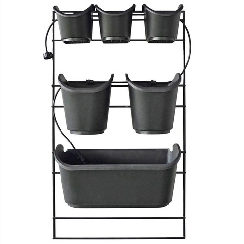 Adorn any outside wall with an eye-catching floral display with this vertical garden planter from Nature! The PVC-coated metal rack can be mounted to the wall with the included fasteners, while the removable pots are very handy to use when potting and planting. Thanks to the convenient drip irrigation system, you just need to connect it to a tap, and your potted plants will get an optimal amount of irrigation. The pots have strainers at the bottom to facilitate the filtering of the water. The included gutter will collect any excess water. When fully grown, the plants will hide the planter and you can feast your eyes on the beautiful floral wall! Delivery includes a rack, a drip irrigation system, 3 square pots of 0.9 L, 2 square pots of 2.5 L and a large pot of 5.4 L.