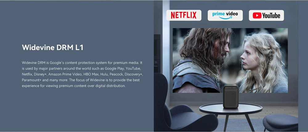 The Wanbo TT is a Netflix-certified LCD projector that runs on Linux. With a brightness of 650ANSI Luments, it is capable of meeting the needs of the majority. In other words, the image is crystal clear and the colors are as saturated as possible, so your favorite movie or game scenes will be displayed in beautiful visuals. A number of built-in applications are preinstalled, such as Netflix or Amazon Prime Video, as well as the YouTube network. Official support for the band Widevine L1 it guarantees you full resolution and accessibility to your favorite series or movies in excellent quality.