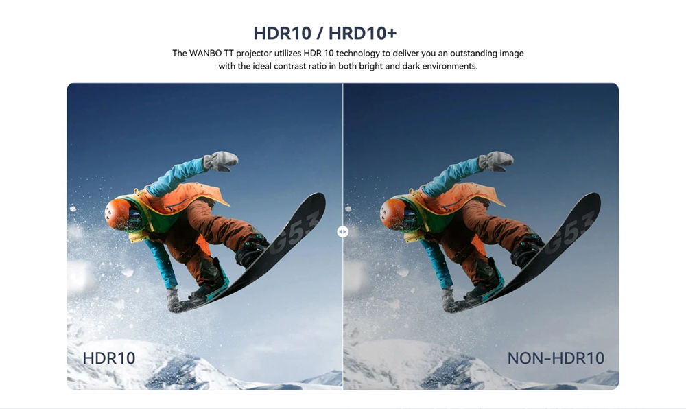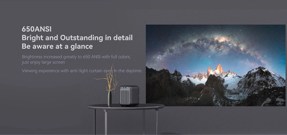 Wanbo TT Compact Projector offers brightness and outstanding details which cannot be ignored. Brightness increased greatly up to 650 ANSI with full colors to enjoy the large screen. A viewing experience with an anti-light curtain even in the daytime. Developed and defined by the internationally recognized association, American National Standards Institute (ANSI).