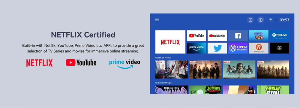 Wanbo TT Compact Projector offers online access to over 200 Apps from the APP Store for easy access to view online freely without even downloading it, including popular Apps- NETFLIX, PRIME VIDEO, YOUTUBE, YOUTUBE KIDS & many more.