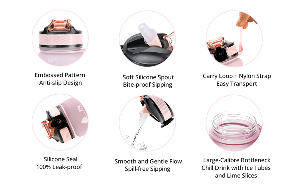 | Specification | Material: Tritan + Silicone + PP Liquid Capacity: 34oz |