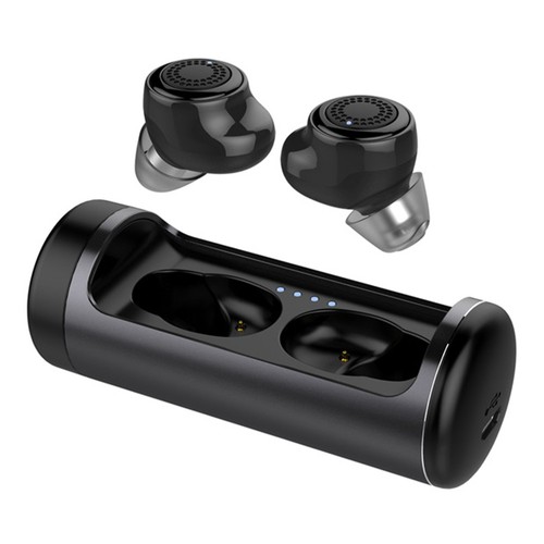 | Specification | Style:In-Ear Wireless Type:Bluetooth Sensitivity:92±3dB Frequency Response Range:20-20000Hz Resistance:32Ω Waterproof:IPX 5 Microphone:Yes Bluetooth Version:V5.0 Earbud battery capacity:55mAH Charging base battery capacity:350mAh Charging base charge the earbuds:2 times Charing time:1 hour Music play time:about 6 hours |