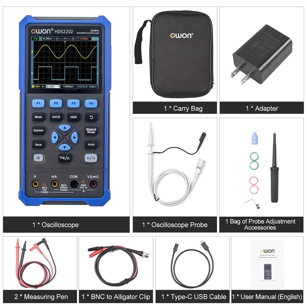 OWON HDS2202 2 in 1 Digital Oscilloscope Multimeter, 200MHz Bandwidth, 1GSa/s Sampling Rate, 20000 Counts - EU Plug
