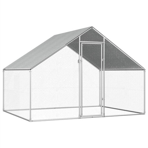 Our practical and spacious chicken cage is a perfect choice as an outdoor enclosure for your chickens, hens, ducks and other small animals and will keep them safe and comfortable. It is also suitable for large birds and can be used as an aviary. This chicken run is made of high-quality galvanised steel for sturdiness and durability and has a 100% polyethylene roof that is water resistant and UV resistant, providing protection from sun, rain, snow and other weather conditions. The chicken wire sidewalls help prevent mischief or unexpected accidents while enabling air circulation. The gate is equipped with a lock to keep your animals extra safe. The product is easy to assemble.