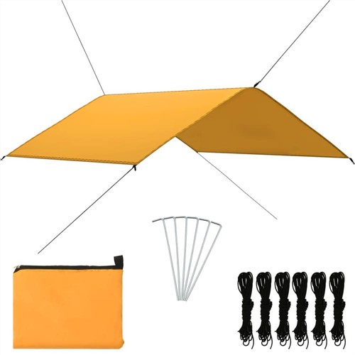 This outdoor tarp fulfills all your outdoor needs! It can be used as backpack tent tarp, rain tarp shelter, shade tarp for beach/park, hammock rain fly, picnic mat, etc. The camping tent is made of 180 T polyester fabric with water repellent PA coating, which protects you and your belongings on rainy weather and blocks the most harmful rays. The clear stitching allows you to open directly and then use the ropes to tie-out the stakes on the ground. It is lightweight and comes with a storage bag, making it convenient to take on trips and easy to store when not in use. The included 6 pegs and 6 ropes is for quick and easy anchoring.