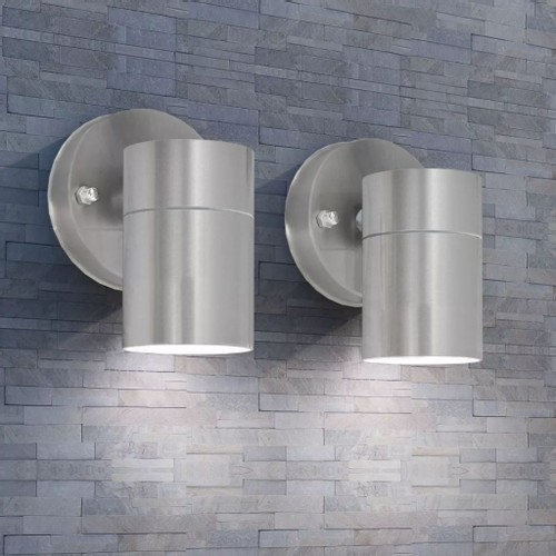 This sleek outdoor wall light set has an understated, modern design. Made of stainless steel, this wall light will enhance any outdoor space. It features an integrated clear glass diffuser. It works on 2 LED bulbs (not included) to emit a pleasant, warm white light that is cast downwards. With its IP44 rating, this wall light is weather-proof and durable. Therefore, it is extremely suitable for outdoor use. Delivery includes 2 wall lights.