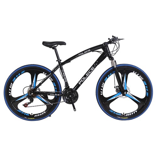 POLECE Python Shaped Mountain Bike 26 Inch Double Disc Brake Aluminum Alloy 21 Speed Gears - Black