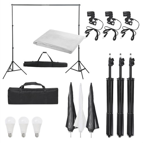 This photo studio kit is an ideal choice for photographing in the studio or on location. Excellent lighting performance: By using the daylight lamps with a colour temperature of 5500 Kelvin, it is possible to capture your subject in a natural way. The three umbrellas provide soft light, so harsh shadows are avoided.Flexible background system: The flexible background system is easy to set up and can be combined with backdrop which has no seams and is colourfast. Each stand has a 1/4 inch standard thread suitable for analog and digital cameras.Easy storage: Thanks to the included carrying bag, the kit is easy to store and carry.