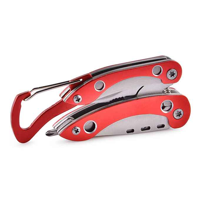 - Multi-purpose pliers head(Nipper pliers,pliers,wire cutters), small knife, bottle opener, straight screwdriver, cross screwdriver, carabiner