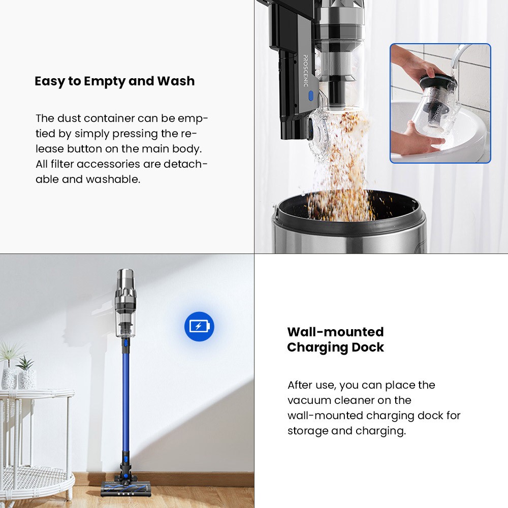| General | Brand: Proscenic Type: Cordless Vacuum Cleaner Model: P11 Animal Color: Blue |