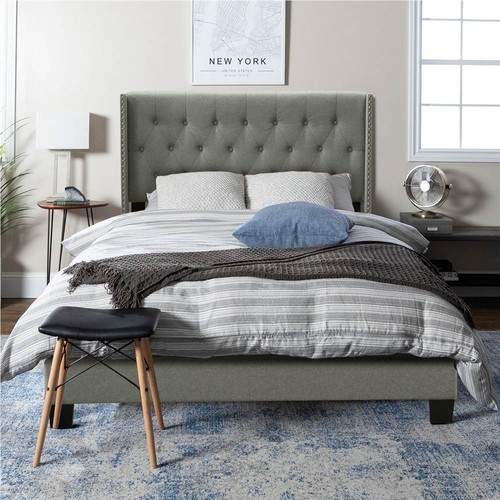 This queen-sized bed frame comes with four wooden slats, and as such, this bed requires a box spring mattress. The mattress is also not included. The headboard is included as a comfy linen fabric backrest that brings you and your partner a cozy feeling.