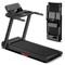 The smart treadmill is equipped with a multifunctional console for controlling start/stop, speed, and built-in Bluetooth audio volume. It offers 12 preset scientific running programs to suit various needs. Three LED screens display real-time workout data, including time, distance, calories, speed, and heart rate. There's ample storage space for items such as water bottles, cell phones, and tablets, ensuring a comprehensive workout experience.