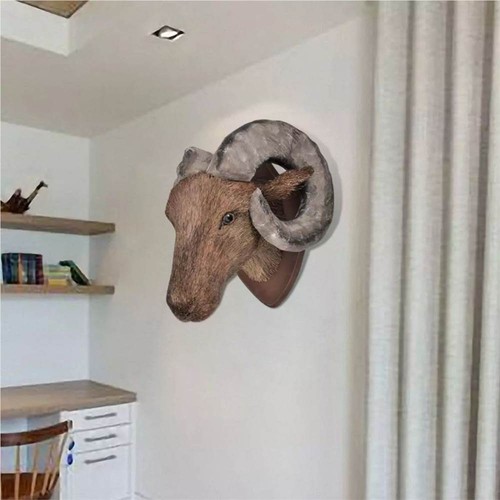 This unique hand-crafted ram head features nice hair and beautiful antlers, being a stunning eye catcher. Made of high-quality materials, this ram head boasts a sturdy structure. It is actually quite large, with a width of 35 cm and a height of 35 cm. Our superb craftsmanship makes this collectible a great addition to your wall decoration. Thanks to the attached rope, the ram head is very easy to be mounted. Place it as a main point of interest in your lake house, cabin, and even your study room to amaze your friends!