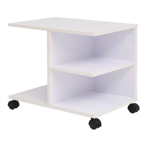 Our modern rolling shelf has a functional design and will make a great addition to your study, office, or living room. It can also be used as a side table. The storage shelf consists of a chipboard frame with a melamine finish, which is easy to clean. The sturdy top is ideal for placing various objects such as books, laptops, etc. Underneath the top, 1 large compartment and 2 small compartments also provide ample storage space for all kinds of things. The castors make the shelf easy and convenient to move. The rolling shelf is easy to assemble.