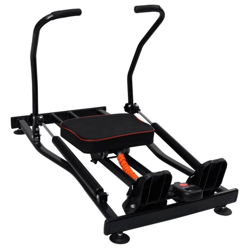 Our functional rowing machine offers an excellent opportunity for a total body workout. This compact rower is perfect for people who want to take their fitness regime in their home. It only needs a little space to set up, and you can quickly start your routine. This unit provides an effective and low impact workout that increases strength in the major muscle groups, including the back, legs, arms, abdominals and buttocks. Designed with adjustable hydraulic cylinder resistance arms, and a manual resistance control knob, the trainer can meet different strength requirements. The LCD display provides you with all relevant information you may need, including time, speed, distance and calories. The thick, padded seat is very comfortable. The heavy-duty steel frame makes it stable and durable. The nonskid PP feet keep it from scratching the floor, and the rubber handle grips provide a comfortable grasp.