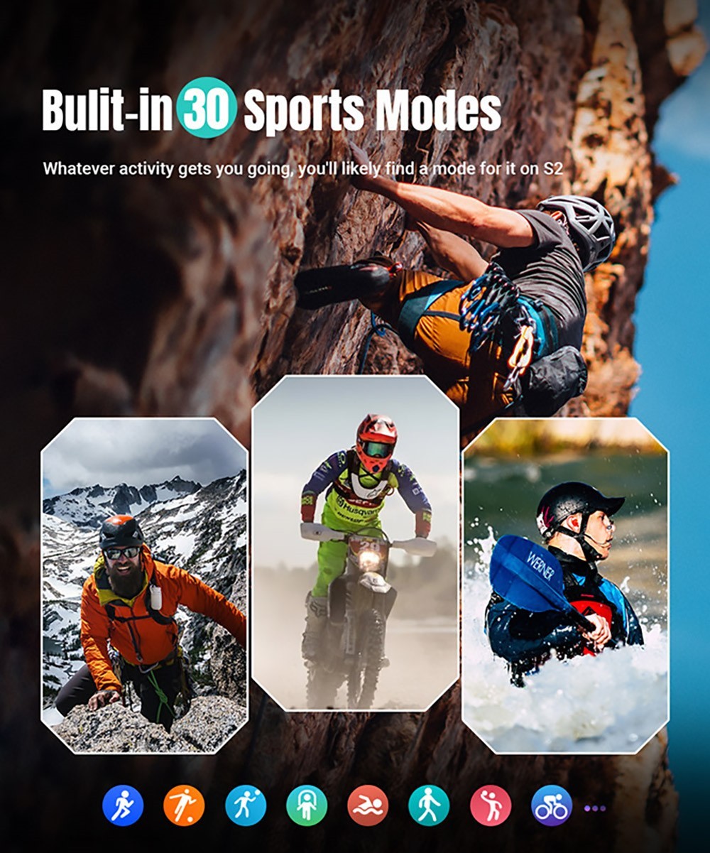 Built-in 30 sports modes, always find your mode on S2 smart sports watch.