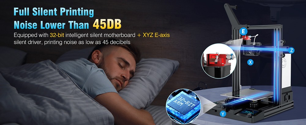 Equipped with 32-bit high performance silent motherboard + xyze-axis silent driver, printing noise as low as 45 decibels.