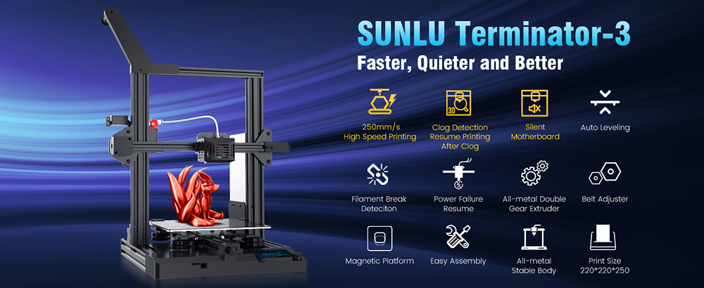 | General | Brand: Sunlu Type: FDM 3d printer Model: Terminator-3 Color: Black |