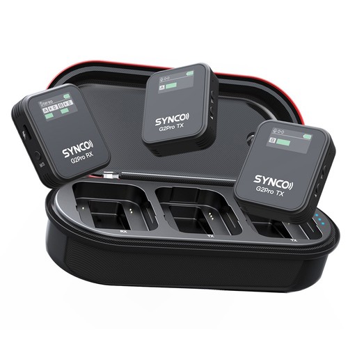 The SYNCO G2 Pro long range wireless microphone offers 24 hours of recording time in total. With inbuilt rechargeable Li-ion battery, SYNCO G2 Pro can work for 8 hours continuously and with the charging box provided it can work up to 24 hours, providing a perfect solution for various of application including broadcast shows, TV show, mobile interview, vlog, and more.