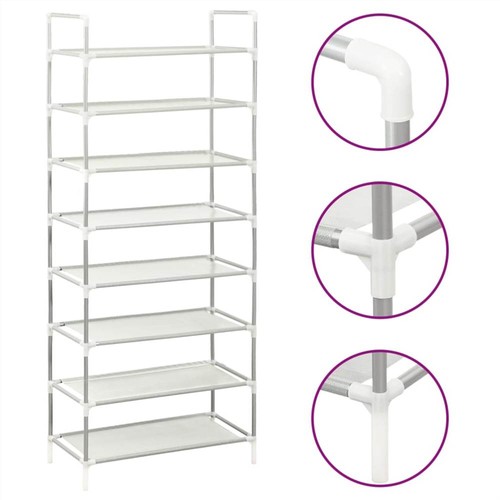 This minimalistic shoe rack is an ideal storage solution for your shoes. The shoe organiser has a tubular metal frame, which is lightweight yet sturdy, making the shoe rack easy to move around and quite stable. It has eight generous shelves that are made of an eco-friendly, non-woven fabric and have ample space to keep your shoes organised and out of the way.
