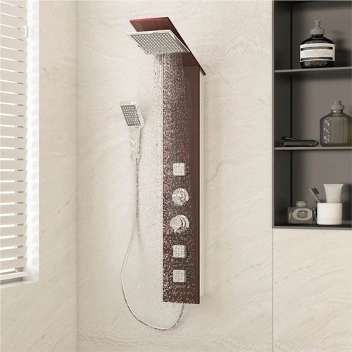 This multifunctional shower panel system has a stylish design and will make a great addition to your bathroom. The shower tower is made of high-quality glass with a beautiful wood grain print. It has three functions: rainfall, massage jets and a handheld showerhead, which can be easily selected by means of a knob. Immerse yourself in a truly relaxing shower experience and enjoy the modern style of this beautifully designed shower panel system!