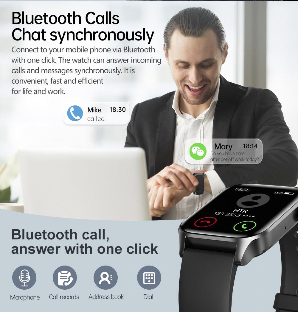 4. One-click connection to your phone via Bluetooth. The watch can answer calls and messages simultaneously. Bring convenience, speed and efficiency to life and work.