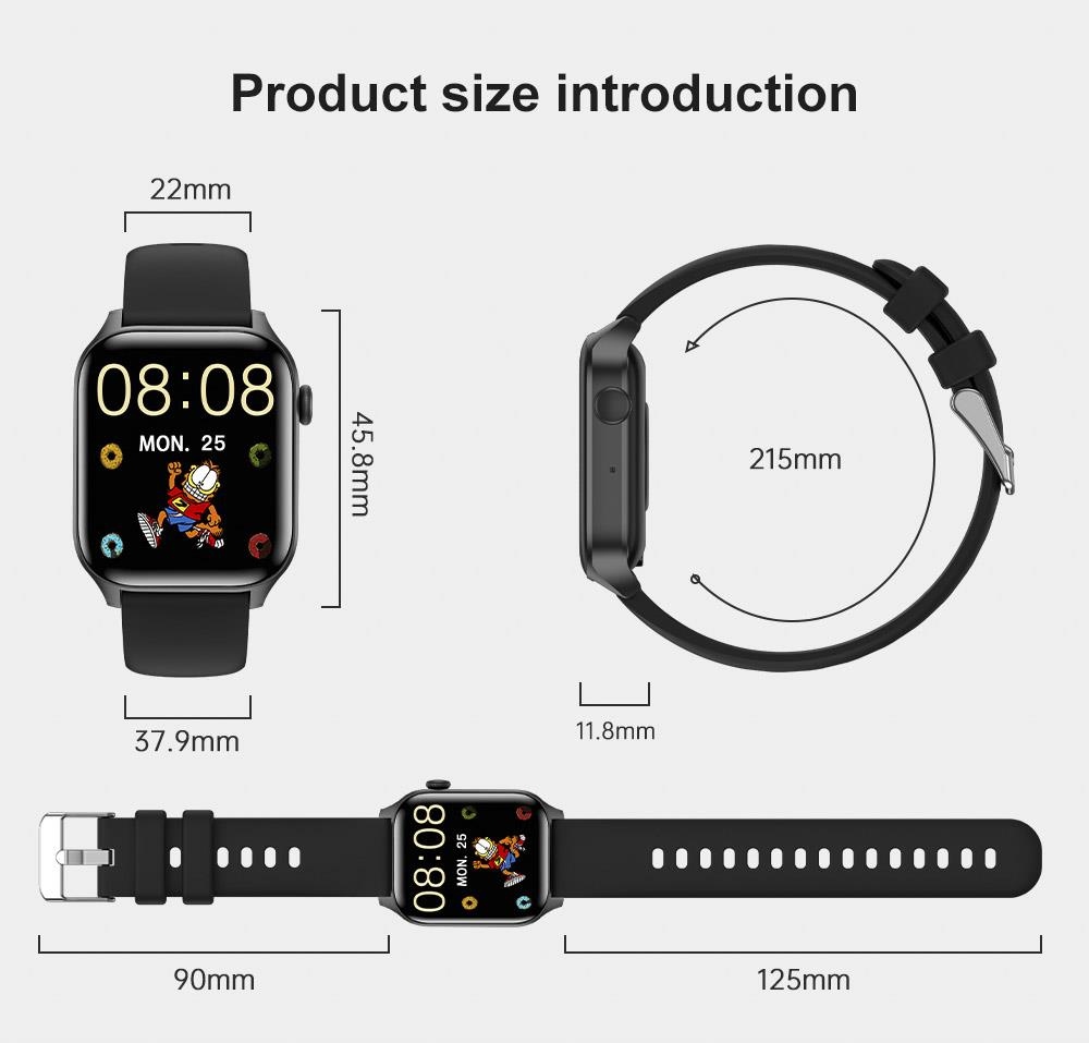 | Specification | Screen: 1.83 inch Resolution: 240*284px System: Android 5.0 and above, IOS 12.1 and above Bluetooth: Bluetooth 5.2 Waterproof: IP67 Material: Plastic Memory: 32M APP: I Band |
