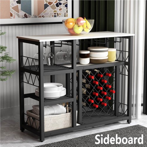 This wine cabinet will be a great solution. With 4 glass holders, 21 bottles' capacity as well as spacious tabletop and 3-tier open shelves, extra convenience is offered to serve your guests or yourself.
