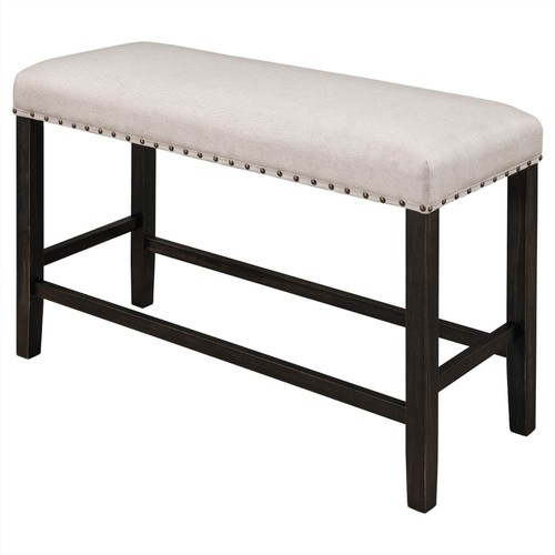 Come with 1 bench, this graceful padded dining bench is designed for small places. The bench can be stacked under the table when not in use to save space. Featuring rustic espresso coating and beige cushions as well as bronze decorated nails, this kitchen bench will bring a bold but soft presence to any dining room.