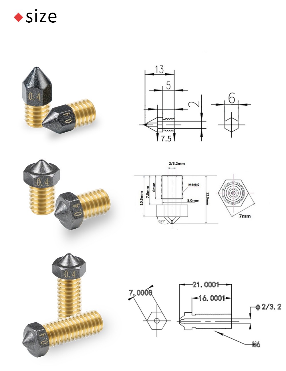 | General | Brand: TWO TREES Type: E3D Nozzlee Model: 0.4mm |