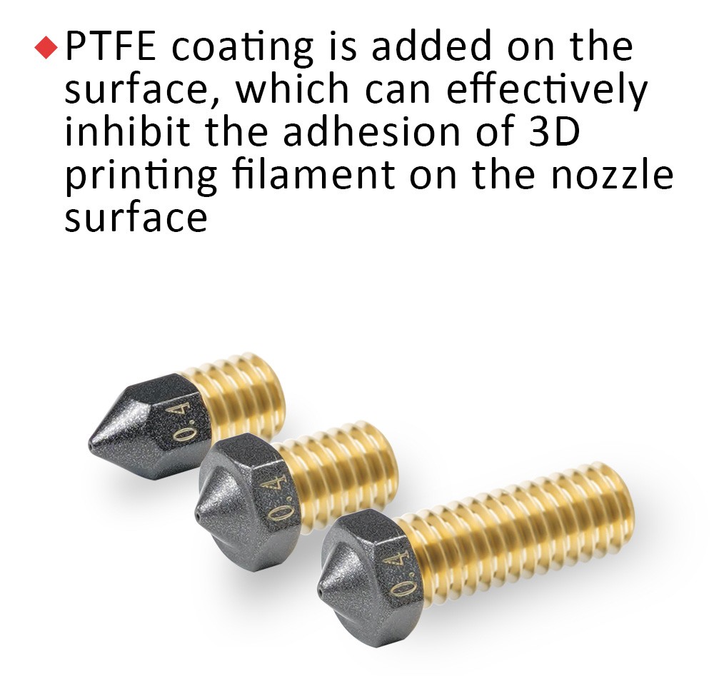 1. PTFE coating can effectively inhibit the adhesion of 3D printing filament on the nozzle surface.