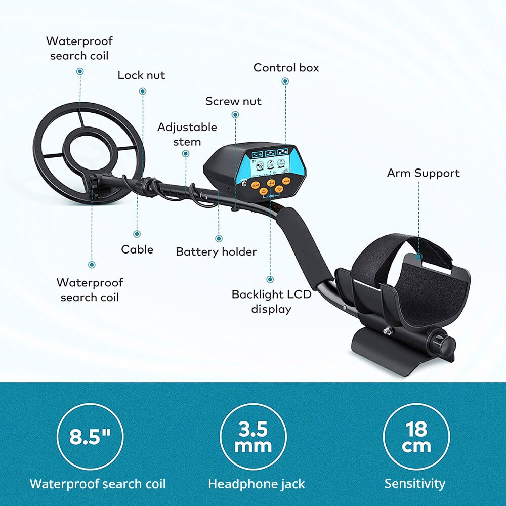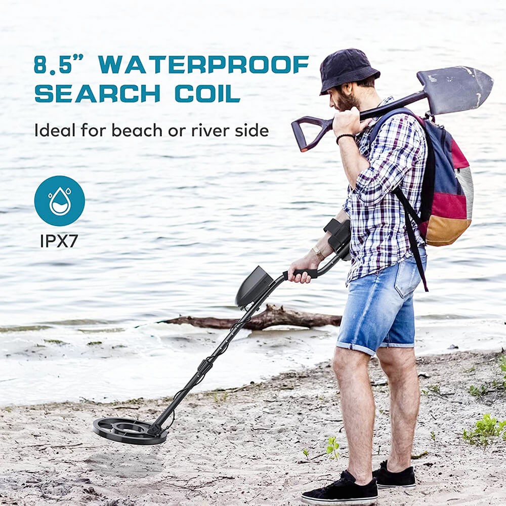 10" Waterproof search coil, which is Highly sensitive, enables you to use detecting underwater, perfect for outdoors, like beaches, streams, and yards. (Note: the control box is not waterproof)
