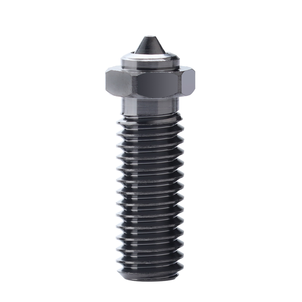 The Triangle-lab NCB™ nozzle is a bimetallic nozzle. Its body is constructed from a highly thermally conductive, high-temperature-resistant copper alloy, while its tip is constructed from hardened tool steel, ensuring a longer lifespan when printing with abrasive materials. The entire nozzle is treated with a diamond-like coating to further enhance wear resistance, reducing scratches that can cause part shedding and print failures.