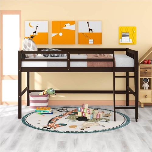 The loft bed perfectly serves homes with limited space. It takes advantage of the floor space, and allows for a cozy rest, and play space, and makes a great piece of furniture for your families.