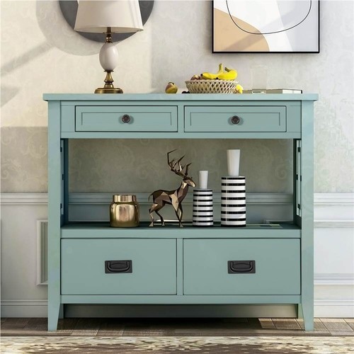 There are four drawers to provide large storage space for your files, sundries, and daily necessities and keep organized. This classic-style console table has one open shelf to offer large holding power to support debris baskets, pot culture, books, etc. The top board can place your beautiful vase, cute photos, and decorations, additional knickknacks, or a lamp.
