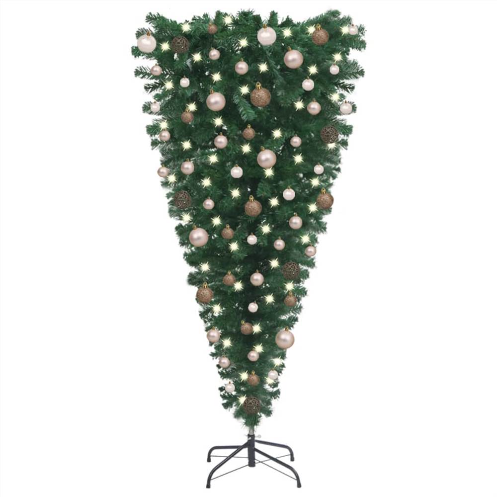 This beautiful upside-down artificial Christmas tree is very lifelike in its shape and appearance, creating just the right atmosphere for the Christmas! This Christmas tree, made of PVC, is very lifelike in its shape and appearance. Thanks to adjustable branches, you can shape your tree in the perfect form. The included steel stand provides your tree with optimal stability. Additionally, the upside-down design makes it an eye-catching centrepiece of your Christmas decorations. The Xmas tree can be used again every year, making it a very economical choice compared to a real tree. Featuring energy-efficient LED lights, it lights up beautifully and creates a cosy holiday atmosphere. What's more, decorated with the beautiful peak and balls, this Xmas tree will be eye-catching in your home. Have fun during the holidays with this lovely Christmas tree!