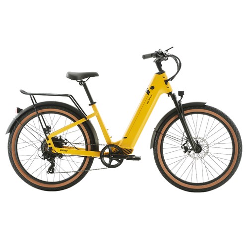 Reinforced aluminum step-thru frame so you can easily hop on & off, even with items stored on the rear rack.
