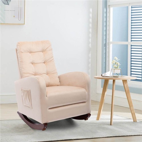 Featuring four-supporting points, this living room rocking chair evenly disperses the pressure to each point, Multi-Purpose Upholstered Rocker.