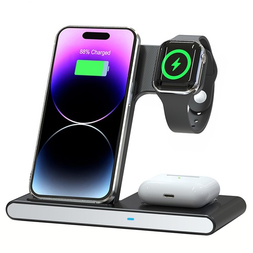 This 3-in-1 wireless charger is designed to work seamlessly with a variety of devices, including iPhone 16 15 14 13 12 8-11 Series, Apple Watch Series 10 9 8 7 6 5 4 3 2 SE and Ultra, AirPods 2 3 4 Pro 2, for Samsung Galaxy S20 S20+ S21 S21+ S22 S22+/Ultra. A perfect present for a couple (to husband or wife), son, daughter, or any loved ones.